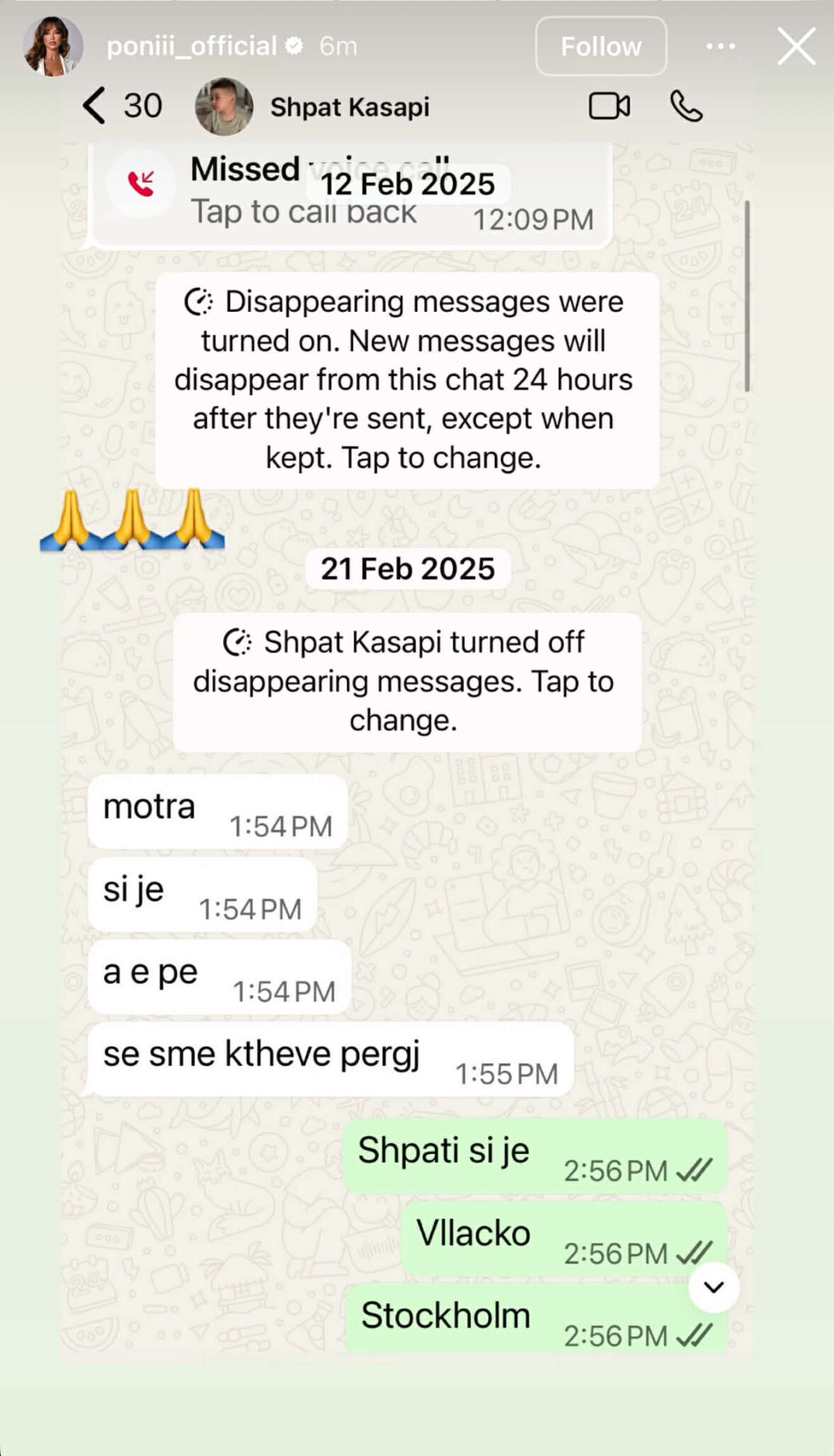 Ajo ka ndarë me ndjekësit në Instagram bisedën e fundit që kishte zhvilluar me Shpatin në Whatsapp, duke treguar lidhjen e ngushtë që kishin, njofton nzoom.biz.