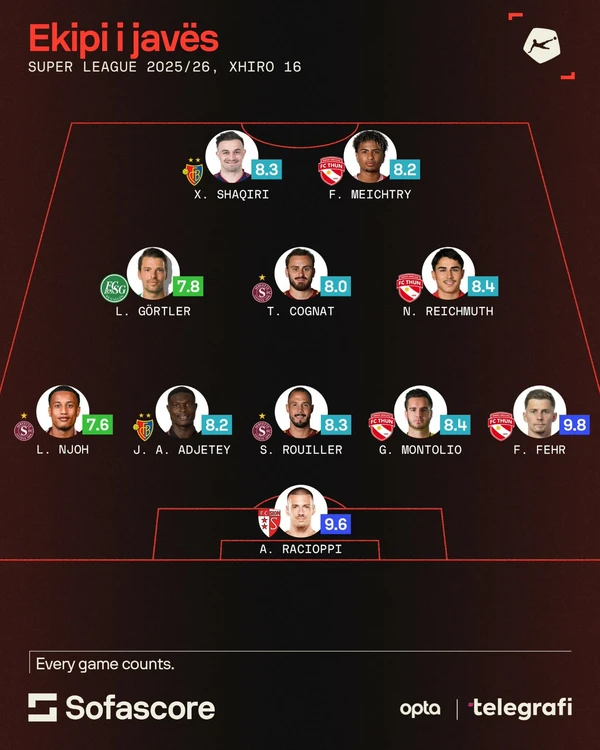 Shaqiri u vlerësua me notën 8.3 nga SofaScore, një prej notave më të larta të javës në Superligën e Zvicrës, duke u renditur mes futbollistëve më të mirë të xhiros.